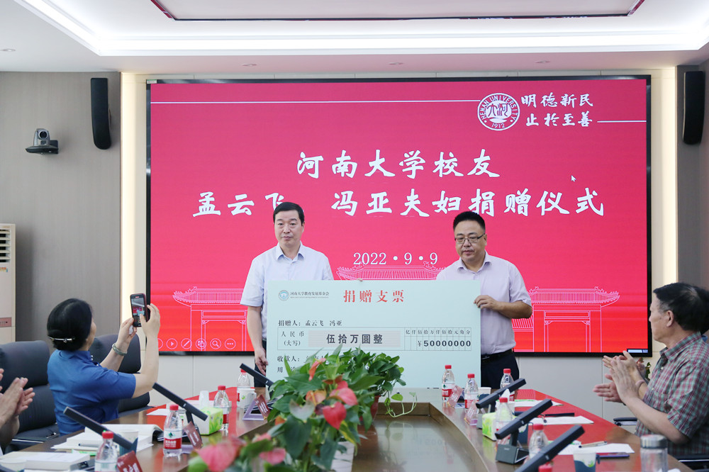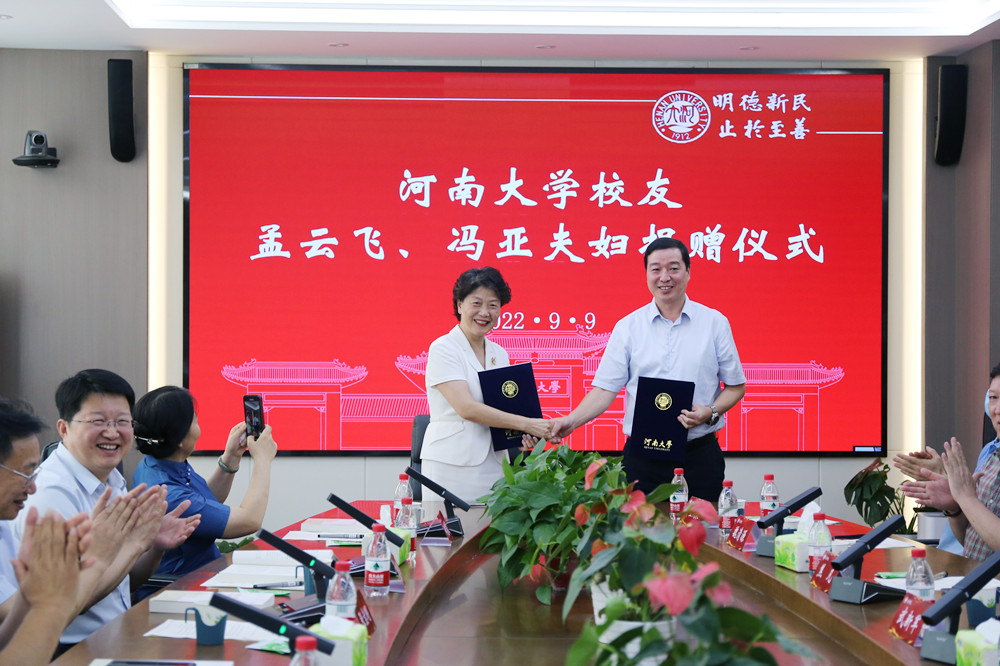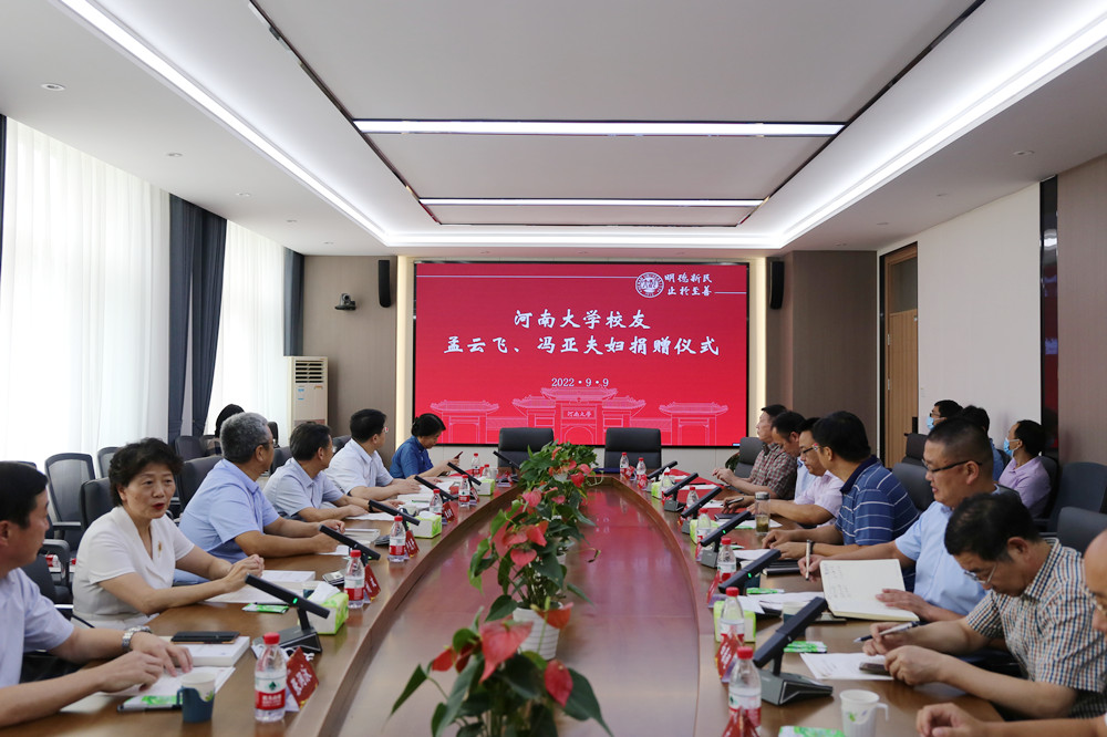 张宝明向孟云飞、冯亚夫妇表示感谢。他指出,今年既是ac米兰官网中文网站建校110周年,又是第二轮“双一流”建设的开启之年,文学院的发展遇到了前所未有的良好机遇。学院的发展离不开广大校友和社会各界的鼎力支持,孟云飞、冯亚夫妇长期以来关注母校发展,多次进行捐赠,充分体现了河大学子对母校的挚爱,更体现出校友们的无私奉献和社会担当。他希望文学院妥善管理、运用这笔赠款,为学校“双一流”建设贡献智慧力量。