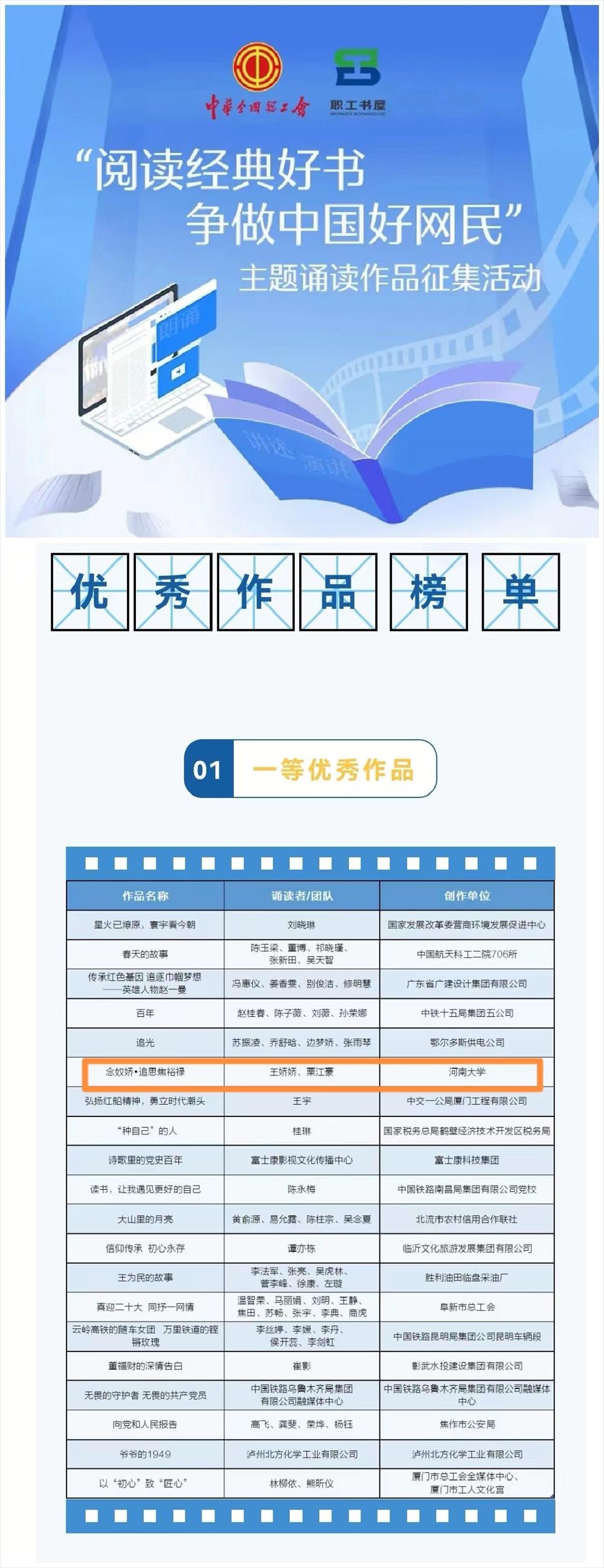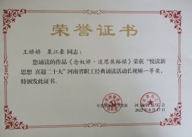 河南省教科文卫体工会职工经典诵读活动一等奖
