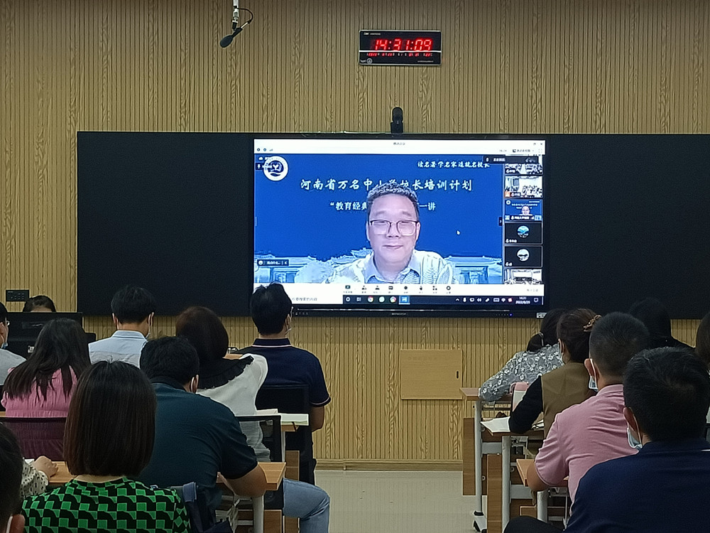8月29日下午,河南省“万名中小学校长培训计划”第一期郑州龙子湖校区导读课第一讲按时开讲,主讲人为ac米兰官网中文网站教育学部二级教授、博士生导师、国家“万人计划”教学名师杨捷教授,受疫情影响,此次导读课以线上授课形式进行。
